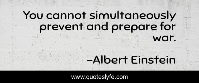 This page presents the quote "You cannot simultaneously prevent and prepare for war.". Author of this quote is Albert Einstein. This quote is about cannot, prepare,.