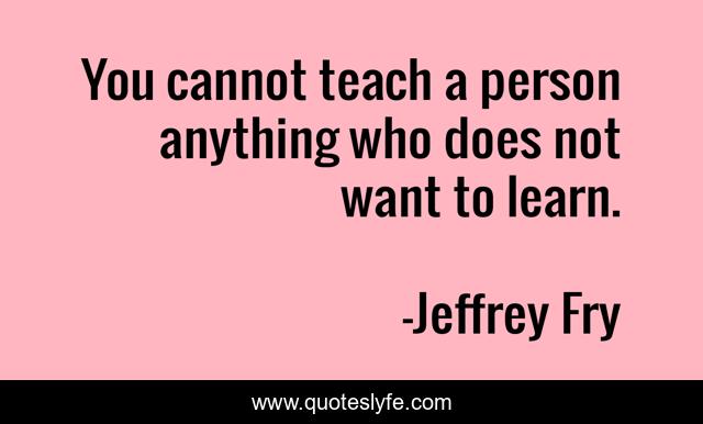 This page presents the quote "You cannot teach a person anything who does not want to learn.". Author of this quote is Jeffrey Fry. This quote is about teach, does-not, learn,.