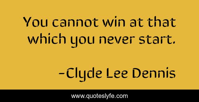 This page presents the quote "You cannot win at that which you never start.". Author of this quote is Clyde Lee Dennis. This quote is about progress, motivation, goals, inspiration,.
