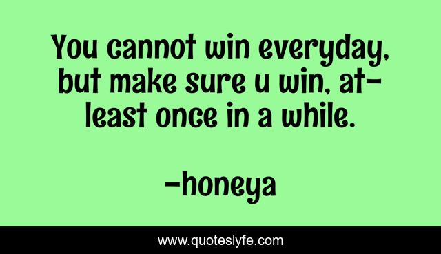 This page presents the quote "You cannot win everyday, but make sure u win, at-least once in a while.". Author of this quote is honeya. This quote is about lessons, life, sales-advice, salesmen, positive, motivational, sales-management, sales, salesmanship,.