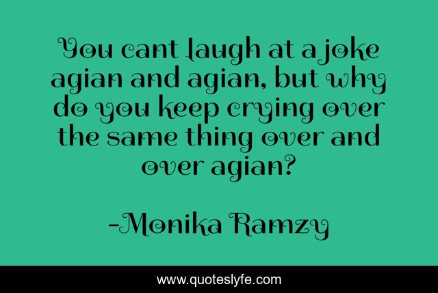 This page presents the quote "You cant laugh at a joke agian and agian, but why do you keep crying over the same thing over and over agian?". Author of this quote is Monika Ramzy. This quote is about betrayal, suffering, love, affection, pain,.