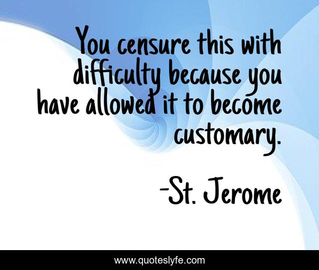 This page presents the quote "You censure this with difficulty because you have allowed it to become customary.". Author of this quote is St. Jerome. .