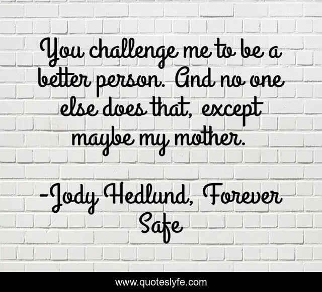 This page presents the quote "You challenge me to be a better person. And no one else does that, except maybe my mother.". Author of this quote is Jody Hedlund, Forever Safe. .