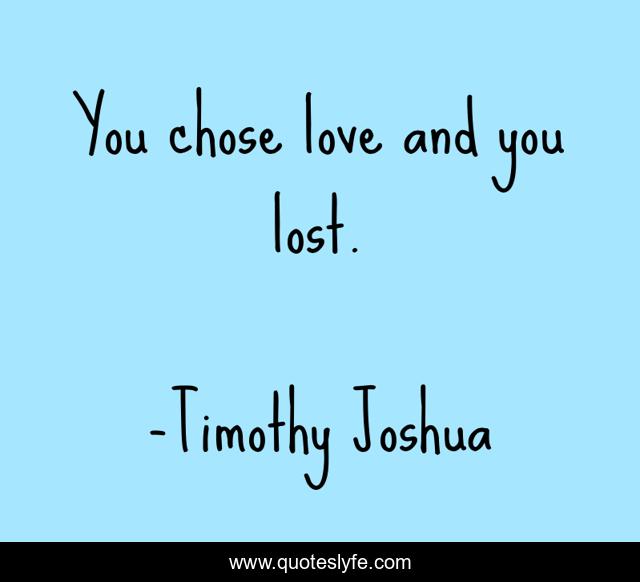 "Timothy Joshua Quotes." Quoteslyfe.com, 2025. Tue. 09 Dec. 2025. <https://www.quoteslyfe.com/quote/You-chose-love-and-you-lost-89987>.