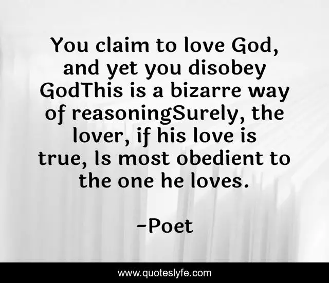 This page presents the quote "You claim to love God, and yet you disobey GodThis is a bizarre way of reasoningSurely, the lover, if his love is true, Is most obedient to the one he loves.". Author of this quote is Poet. .