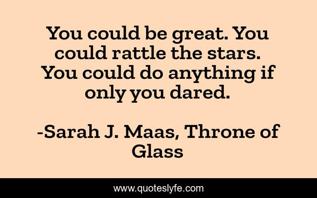This page presents the quote "You could be great. You could rattle the stars. You could do anything if only you dared.". Author of this quote is Sarah J. Maas, Throne of Glass. .