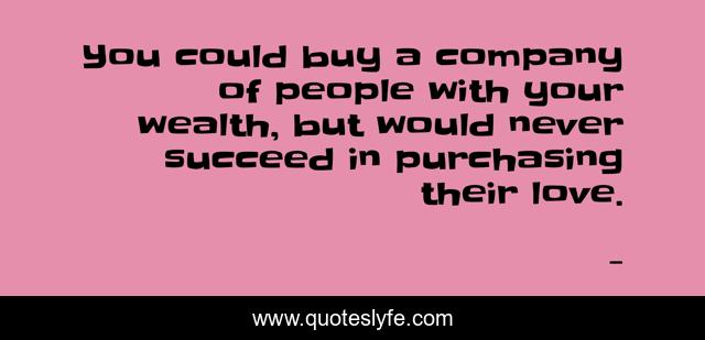 This page presents the quote "You could buy a company of people with your wealth, but would never succeed in purchasing their love.". Author of this quote is . This quote is about purchase, buy, love, wealth, edmond-mbiaka, you-can-never-buy-love, a-company-of-people, affection,.