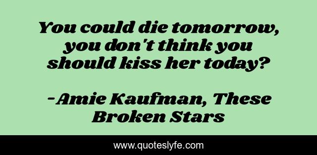This page presents the quote "You could die tomorrow, you don't think you should kiss her today?". Author of this quote is Amie Kaufman, These Broken Stars. This quote is about die, death, love, kiss, affection,.