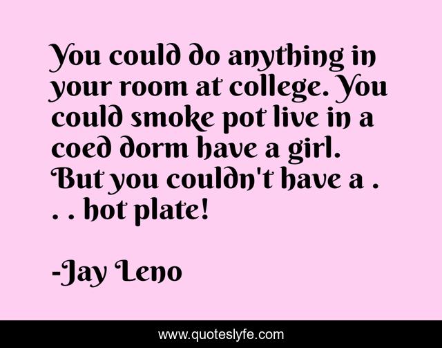 This page presents the quote "You could do anything in your room at college. You could smoke pot live in a coed dorm have a girl. But you couldn't have a . . . hot plate!". Author of this quote is Jay Leno. .