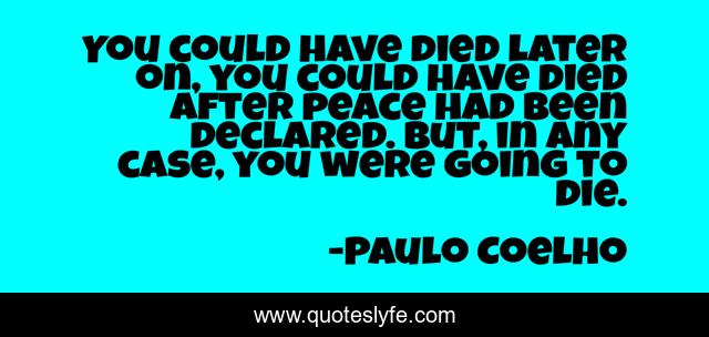 This page presents the quote "You could have died later on, you could have died after peace had been declared. But, in any case, you were going to die.". Author of this quote is Paulo Coelho. This quote is about empowering, encouragement,.