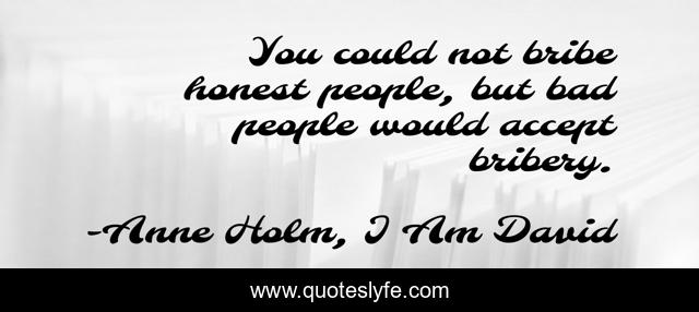 This page presents the quote "You could not bribe honest people, but bad people would accept bribery.". Author of this quote is Anne Holm, I Am David. This quote is about bribery, honesty,.