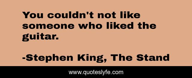 This page presents the quote "You couldn't not like someone who liked the guitar.". Author of this quote is Stephen King, The Stand. This quote is about guitar, music,.