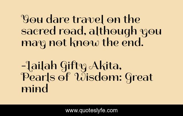 "Lailah Gifty Akita, Pearls of Wisdom: Great mind Quotes." Quoteslyfe.com, 2025. Tue. 09 Dec. 2025. <https://www.quoteslyfe.com/quote/You-dare-travel-on-the-sacred-road-62452>.