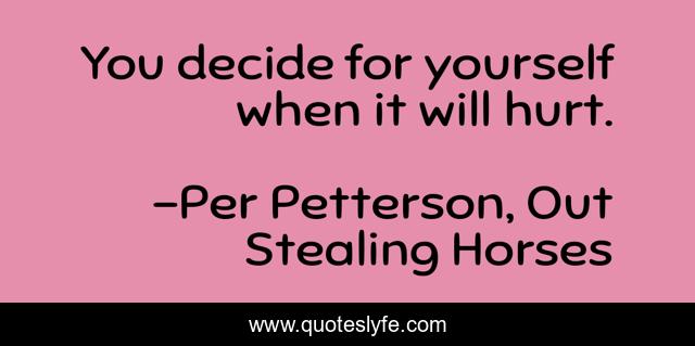 This page presents the quote "You decide for yourself when it will hurt.". Author of this quote is Per Petterson, Out Stealing Horses. .