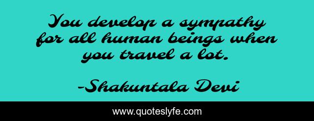 This page presents the quote "You develop a sympathy for all human beings when you travel a lot.". Author of this quote is Shakuntala Devi. This quote is about sympathy, human,.