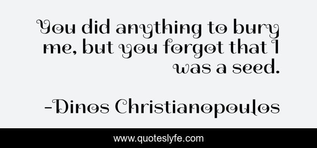 This page presents the quote "You did anything to bury me, but you forgot that I was a seed.". Author of this quote is Dinos Christianopoulos. This quote is about adversity, enthusiasm, hope, inspirational, poetry,.