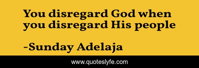 This page presents the quote "You disregard God when you disregard His people". Author of this quote is Sunday Adelaja. This quote is about kingdom, life, love, destiny, serving-god, people, money, god, work,.