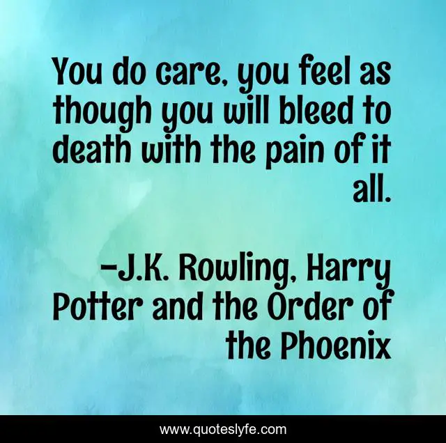 This page presents the quote "You do care, you feel as though you will bleed to death with the pain of it all.". Author of this quote is J.K. Rowling, Harry Potter and the Order of the Phoenix. This quote is about orderofthephoenix, quote, understated, harrypotter,.