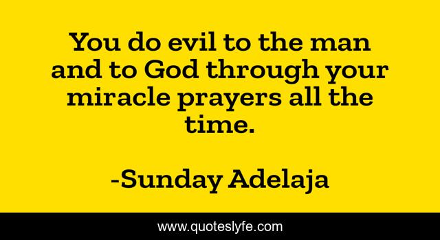 This page presents the quote "You do evil to the man and to God through your miracle prayers all the time.". Author of this quote is Sunday Adelaja. This quote is about miracles, prayers, godly, evil, miracle, man,.