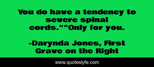 This page presents the quote "You do have a tendency to severe spinal cords.""Only for you.". Author of this quote is Darynda Jones, First Grave on the Right. .