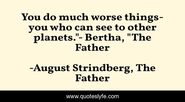 This page presents the quote "You do much worse things- you who can see to other planets."- Bertha, "The Father". Author of this quote is August Strindberg, The Father. This quote is about drama, human-nature, play, astrology,.