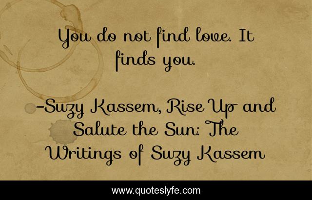 "Suzy Kassem, Rise Up and Salute the Sun: The Writings of Suzy Kassem Quotes." Quoteslyfe.com, 2025. Sat. 06 Dec. 2025. <https://www.quoteslyfe.com/quote/You-do-not-find-love-It-finds-44525>.