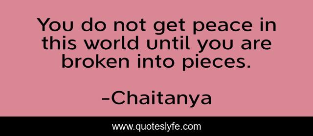 This page presents the quote "You do not get peace in this world until you are broken into pieces.". Author of this quote is Chaitanya. .