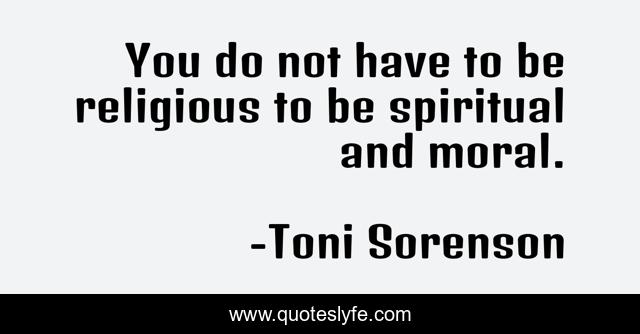 This page presents the quote "You do not have to be religious to be spiritual and moral.". Author of this quote is Toni Sorenson. This quote is about brain, faith, awareness, thoughts, spirituality,.
