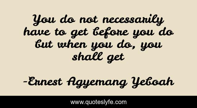 This page presents the quote "You do not necessarily have to get before you do but when you do, you shall get". Author of this quote is Ernest Agyemang Yeboah. This quote is about faith, small-beginnings, do-something, taking-steps, beginning-a-purpose, behaviour, attitude, the-journey-of-life, startups,.