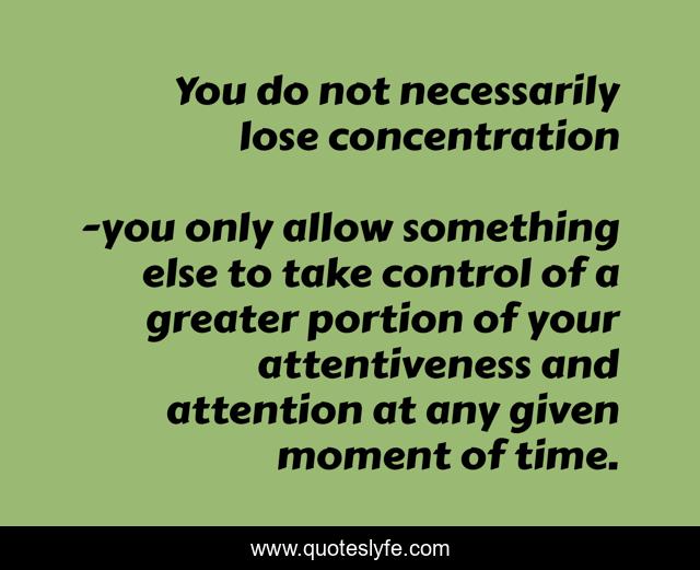 "you only allow something else to take control of a greater portion of your attentiveness and attention at any given moment of time. Quotes." Quoteslyfe.com, 2025. Fri. 05 Dec. 2025. <https://www.quoteslyfe.com/quote/You-do-not-necessarily-lose-concentration-191965>.