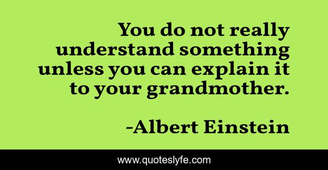 This page presents the quote "You do not really understand something unless you can explain it to your grandmother.". Author of this quote is Albert Einstein. .