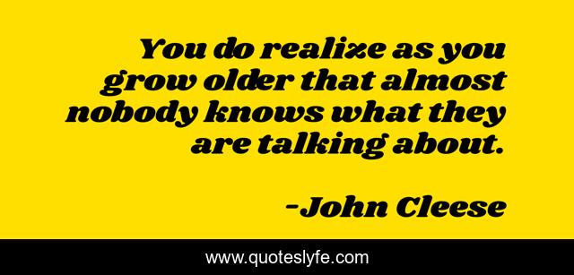 This page presents the quote "You do realize as you grow older that almost nobody knows what they are talking about.". Author of this quote is John Cleese. This quote is about finite, ignorance, knowledge,.