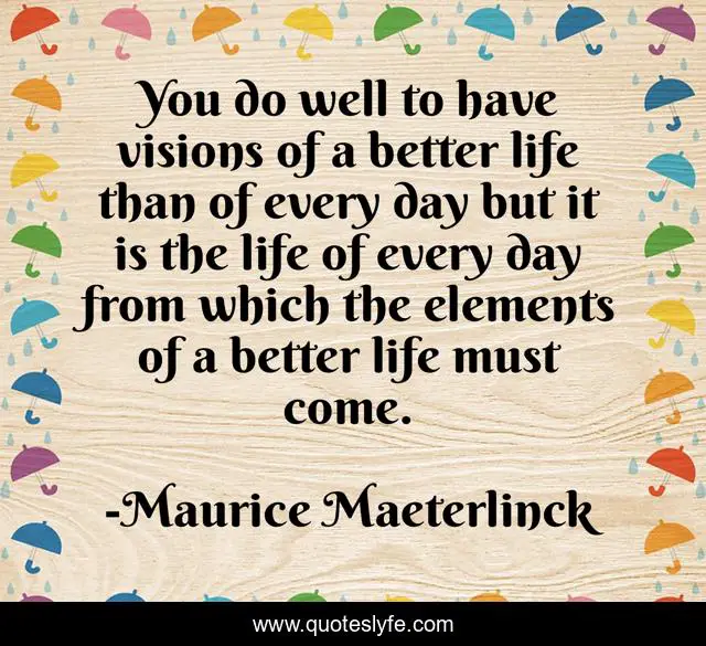 This page presents the quote "You do well to have visions of a better life than of every day but it is the life of every day from which the elements of a better life must come.". Author of this quote is Maurice Maeterlinck. .