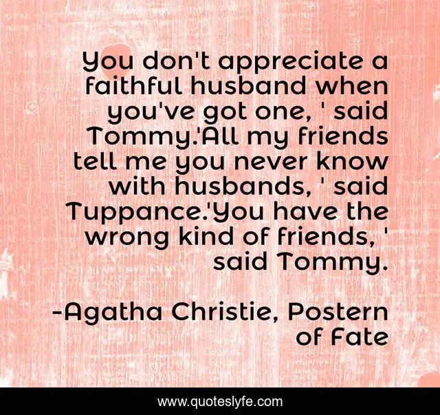 "Agatha Christie, Postern of Fate Quotes." Quoteslyfe.com, 2025. Sat. 06 Dec. 2025. <https://www.quoteslyfe.com/quote/You-don-t-appreciate-a-faithful-husband-41371>.
