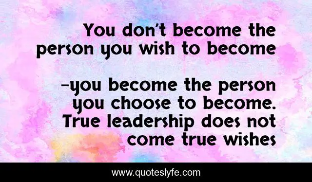 Check all other quotes by you become the person you choose to become. True leadership does not come true wishes