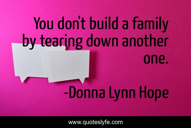 This page presents the quote "You don't build a family by tearing down another one.". Author of this quote is Donna Lynn Hope. This quote is about selfishness, betrayal, families, entitlement, family,.