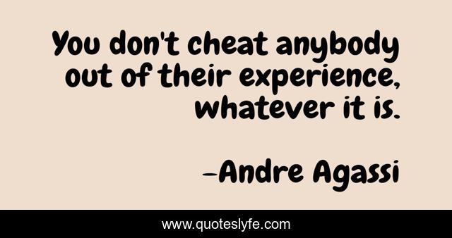 This page presents the quote "You don't cheat anybody out of their experience, whatever it is.". Author of this quote is Andre Agassi. This quote is about cheat, whatever,.