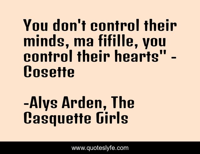 This page presents the quote "You don't control their minds, ma fifille, you control their hearts" - Cosette". Author of this quote is Alys Arden, The Casquette Girls. This quote is about cosette, new-orleans, casquette-girls, alys, vampires,.