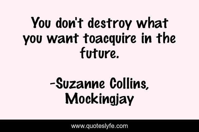 This page presents the quote "You don't destroy what you want toacquire in the future.". Author of this quote is Suzanne Collins, Mockingjay. This quote is about destroy, acquire, future, truth,.