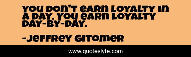 This page presents the quote "You don't earn loyalty in a day. You earn loyalty day-by-day.". Author of this quote is Jeffrey Gitomer. .