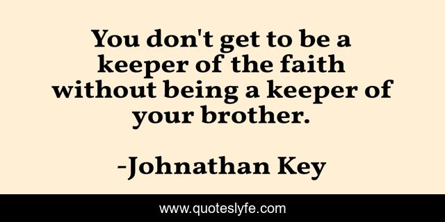 This page presents the quote "You don't get to be a keeper of the faith without being a keeper of your brother.". Author of this quote is Johnathan Key. This quote is about faith, love, god, brother, jesus, religion, affection,.