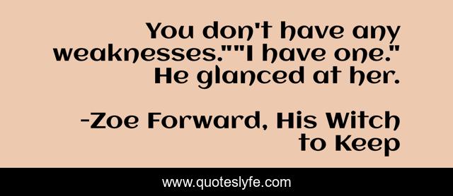 "Zoe Forward, His Witch to Keep Quotes." Quoteslyfe.com, 2025. Sat. 06 Dec. 2025. <https://www.quoteslyfe.com/quote/You-don-t-have-any-weaknesses-I-132062>.