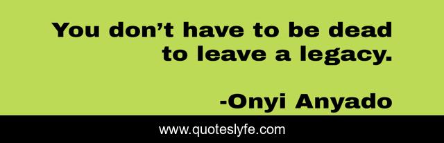 This page presents the quote "You don’t have to be dead to leave a legacy.". Author of this quote is Onyi Anyado. This quote is about legacy, grandchildren, inheritance, quotes, leadership, brainyquote, distinction,.
