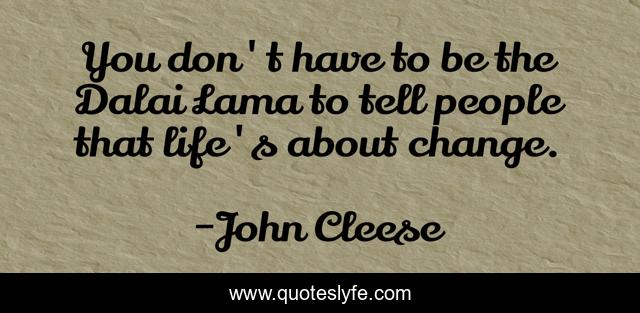 This page presents the quote "You don't have to be the Dalai Lama to tell people that life's about change.". Author of this quote is John Cleese. This quote is about change, people,.
