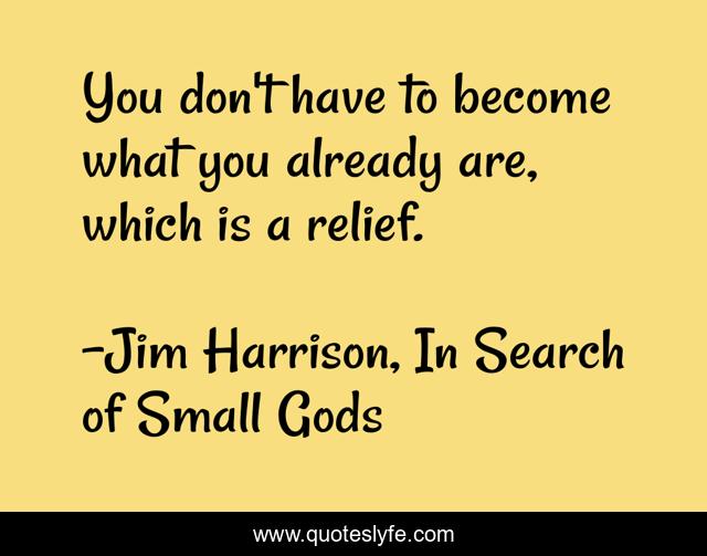 This page presents the quote "You don't have to become what you already are, which is a relief.". Author of this quote is Jim Harrison, In Search of Small Gods. This quote is about destiny, identity,.