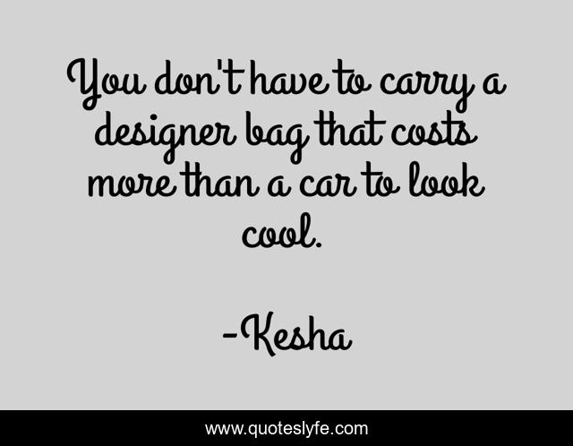 This page presents the quote "You don't have to carry a designer bag that costs more than a car to look cool.". Author of this quote is Kesha. This quote is about car, bag,.