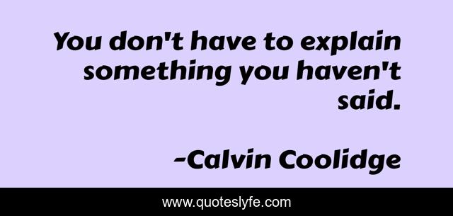 This page presents the quote "You don't have to explain something you haven't said.". Author of this quote is Calvin Coolidge. This quote is about quietness, communication, speech,.