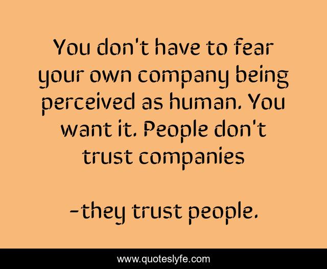 This page presents the quote "You don't have to fear your own company being perceived as human. You want it. People don't trust companies". Author of this quote is they trust people.. .