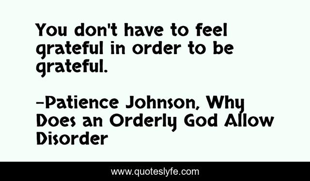 "Patience Johnson, Why Does an Orderly God Allow Disorder Quotes." Quoteslyfe.com, 2025. Fri. 05 Dec. 2025. <https://www.quoteslyfe.com/quote/You-don-t-have-to-feel-grateful-34024>.