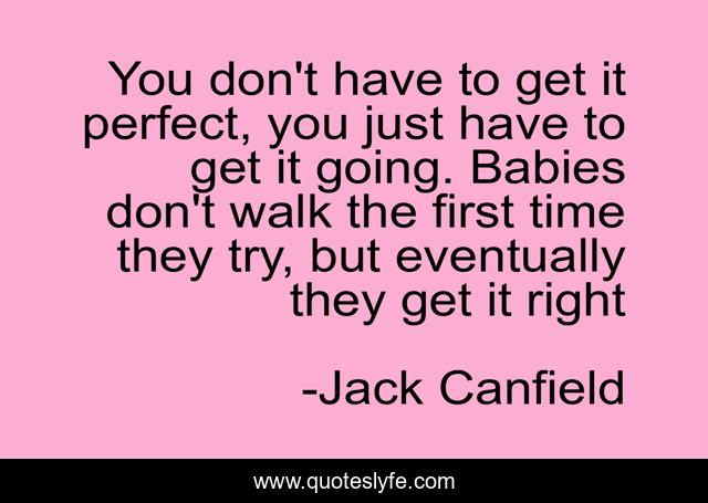 This page presents the quote "You don't have to get it perfect, you just have to get it going. Babies don't walk the first time they try, but eventually they get it right". Author of this quote is Jack Canfield. This quote is about positive, confidence, motivational, determination, optimistic,.